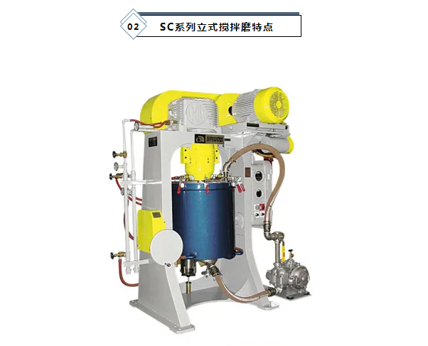 Ø SC系列研磨缸的容積為25升至930升,功率為5KW至95KW。這種高效的研磨機(jī)具有錐形研磨缸,從而減少攪拌臂底部攪拌臂的負(fù)荷,便于啟動(dòng)。特殊設(shè)計(jì)的提升臂可將研磨缸底部的磨介和物料提升上來,防止出現(xiàn)死角。帶有WC套筒的攪拌臂可以減少攪拌臂的磨損和對(duì)產(chǎn)品的污染。