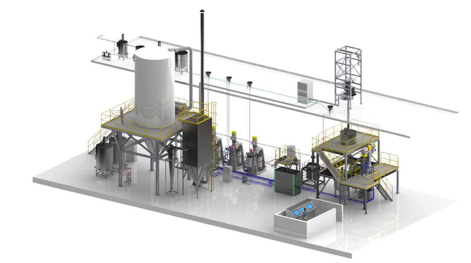 氧化鋁智能生產(chǎn)線滿足整個過程中全封閉、自動化、數(shù)字化、智能化生產(chǎn),實現(xiàn)配料精確、質(zhì)量穩(wěn)定、集中控制,連續(xù)生產(chǎn)的要求,所有參與物料循環(huán)的設(shè)備及零部件經(jīng)過ETFE涂層處理,可防止物料污染。產(chǎn)線主要設(shè)備及系統(tǒng)配置主要有噸袋拆包一體機(jī)、溶膠攪挫系統(tǒng)、粉料配料輸送系統(tǒng)、稱重緩存系統(tǒng),UP高端球磨機(jī)、在線粒度檢測、除鐵除磁系統(tǒng)、噴霧造粒系統(tǒng),除塵過濾系統(tǒng)、安全監(jiān)控系統(tǒng)等。根據(jù)客戶需求,可配置不同UP高端球磨機(jī),實現(xiàn)滿足于微米級至納米級物料生產(chǎn)。